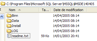 - le nom du serveur MSDE sur lequel elle se trouve