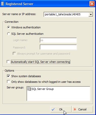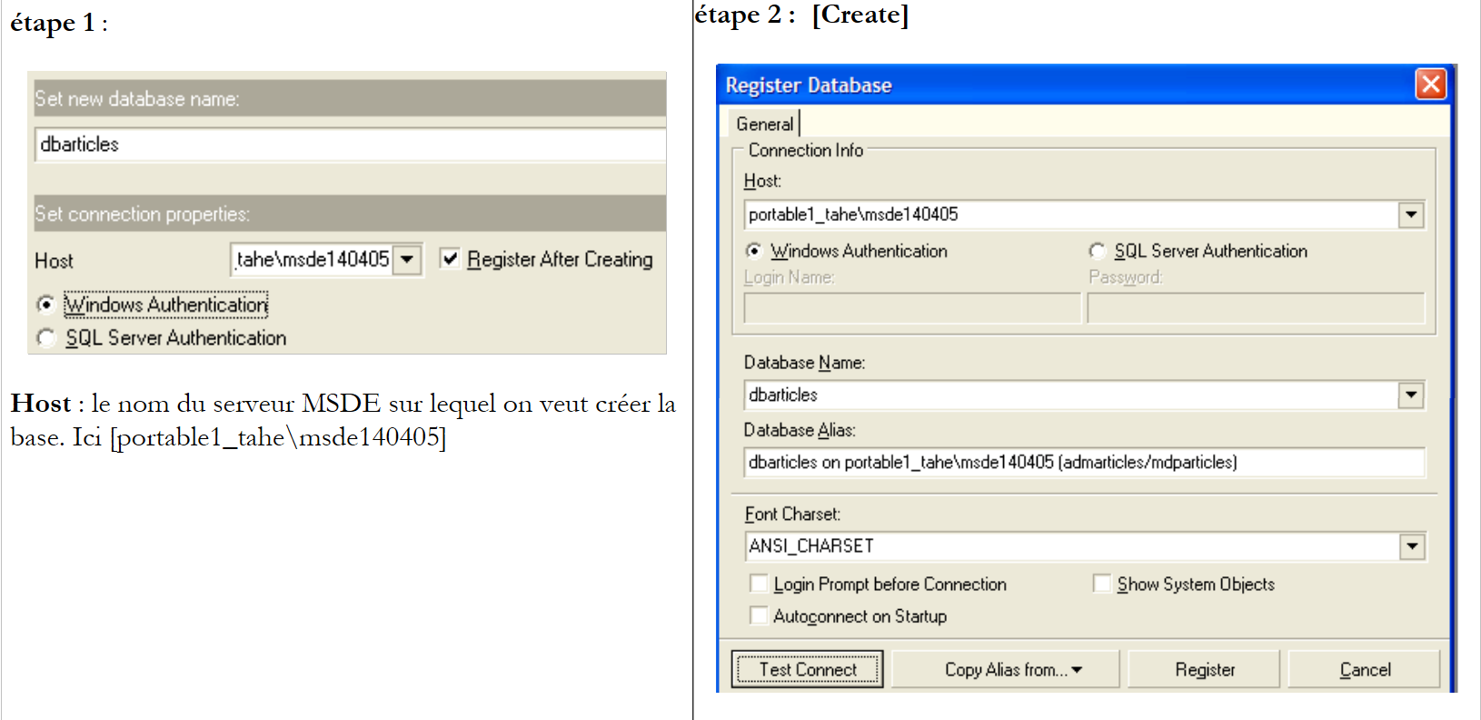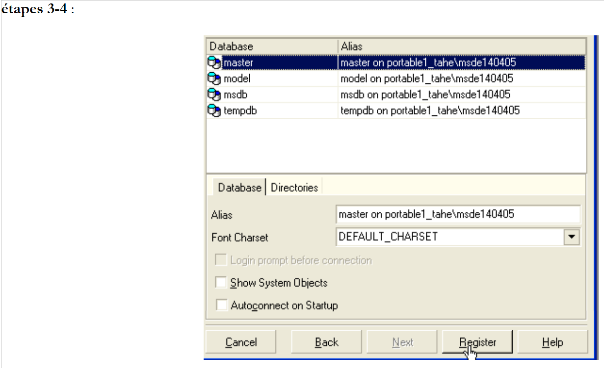 - étape 4 : nous enregistrons le serveur MSDE avec ele bouton [Register]