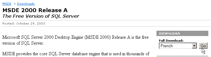 - télécharger et installer MSDE (Microsoft Data Engine) qui est une version limitée de SQL Server.