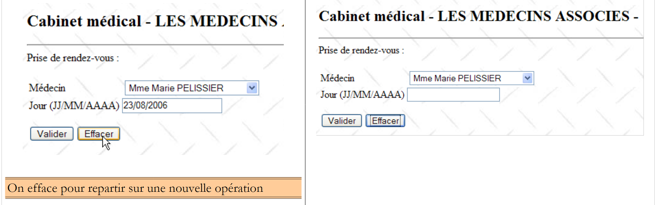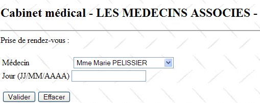 Nous appellerons [RdvMedecins] l'application. Nous présentons ci-dessous des copies d'écran de ce que pourrait être son fonctionnement avec un client web. Ce client web n'est pas présenté dans ce tutoriel. On le trouvera dans le document [http://tahe.developpez.com/dotnet/exercices/], exercice n° 4.