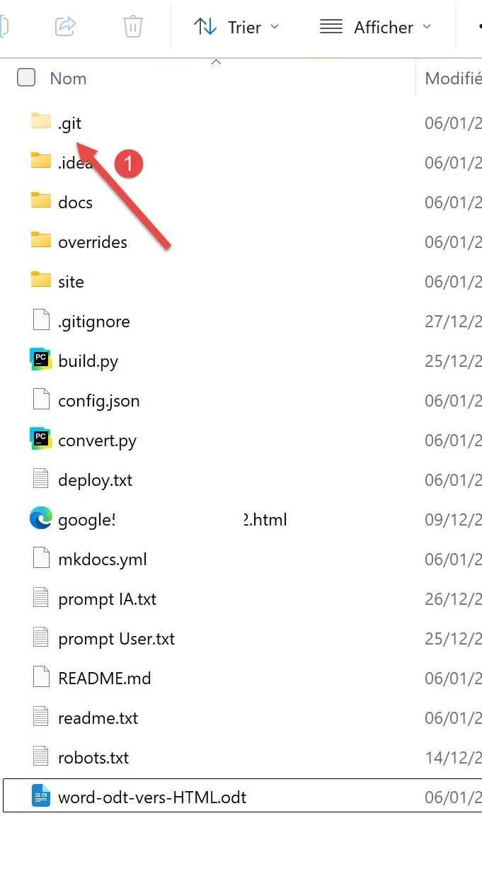 - En [1], supprimez le dossier [.git] ;