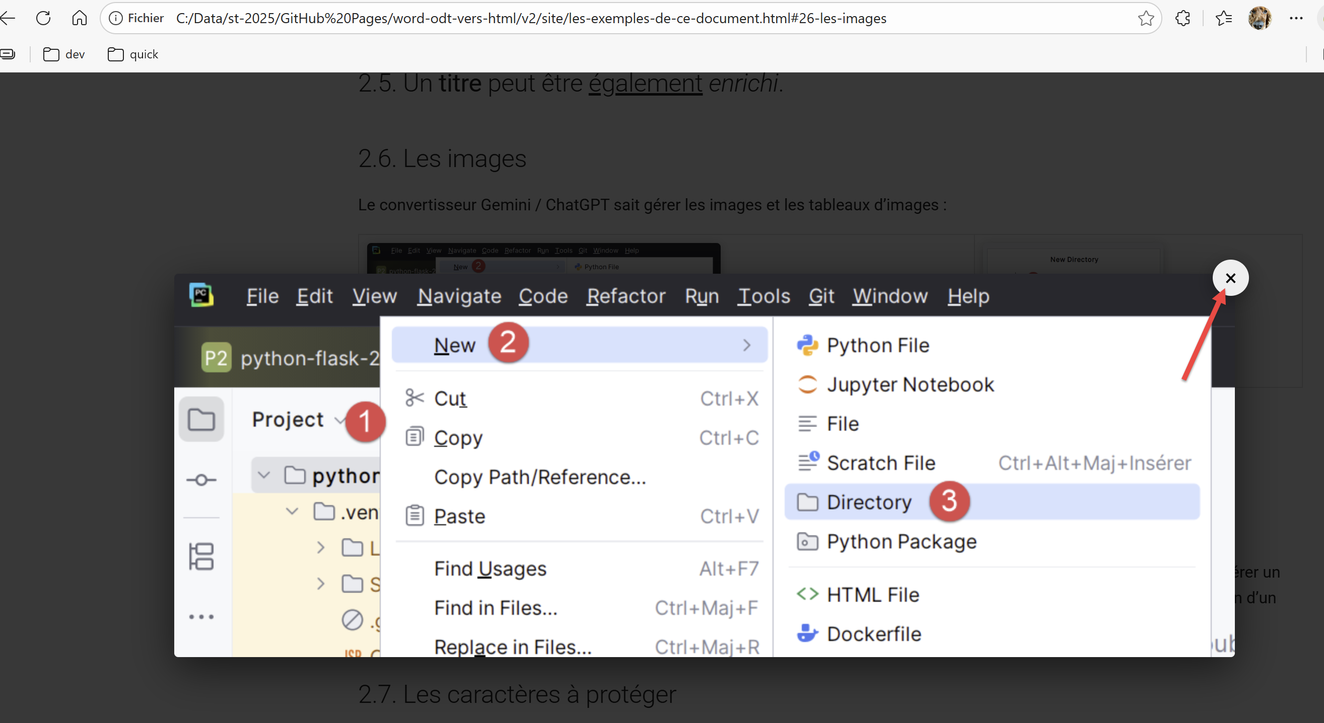 Je vais présenter maintenant des exemples des particularités de mes documents ODT / DOCX que le convertisseur Gemini / ChatGPT gère correctement. C’est ce propre document que nous proposerons à la conversion HTML au script de Gemini / ChatGPT. Nous verrons ce qu’il en fait.